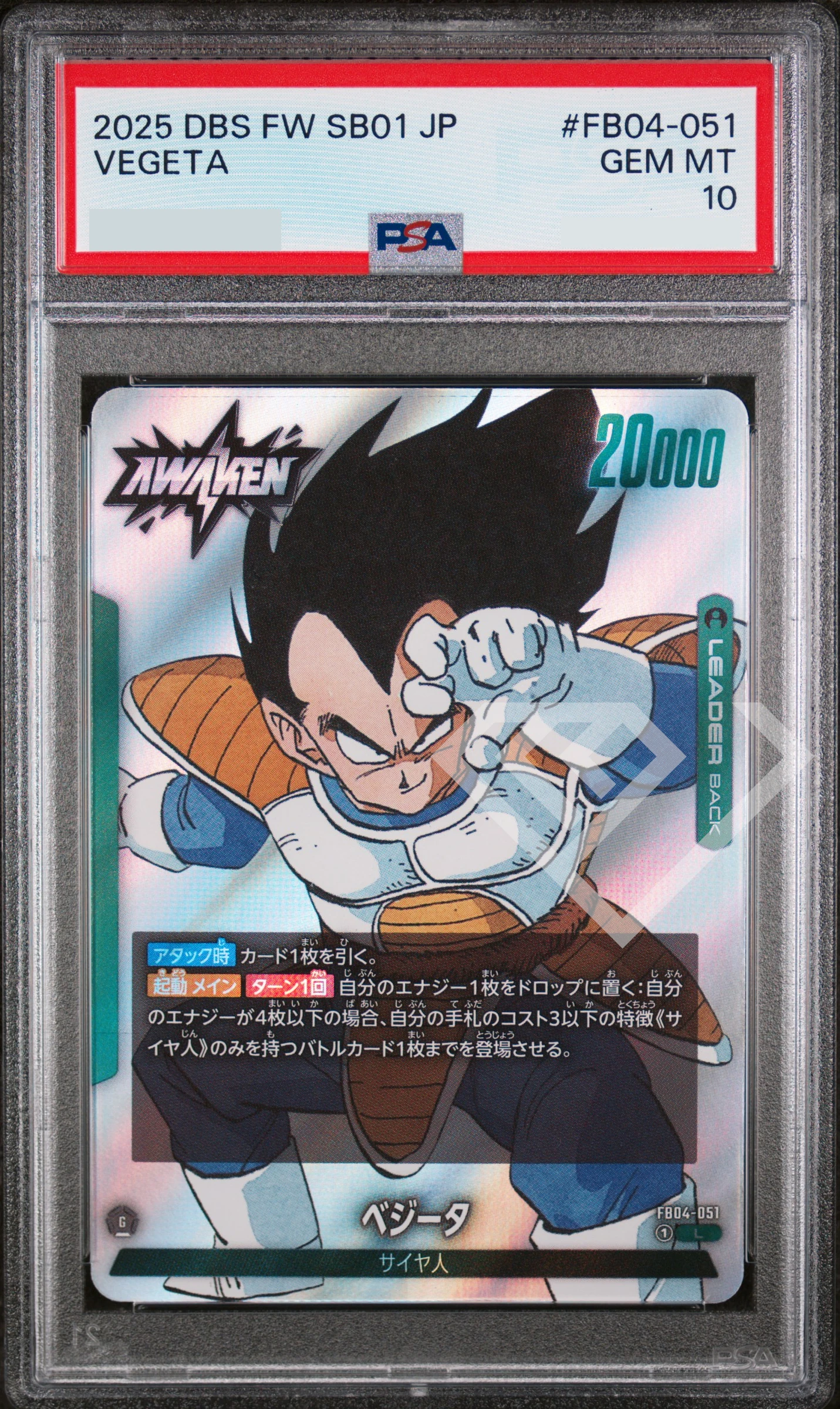 Vegeta FB04-051 Leader – SB01 Alternate Art PSA 10 Japanese